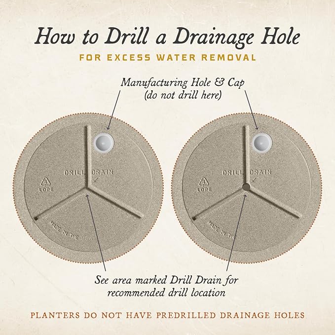 - Plant It All - The Santorini Bowl large outdoor planters provide ample space for diverse greenery, vibrant flowers, and abundant succulents to flourish. Dimensions: 26"x26"x9". Capacity: 36 Quarts. Includes drillable drainage holes.
