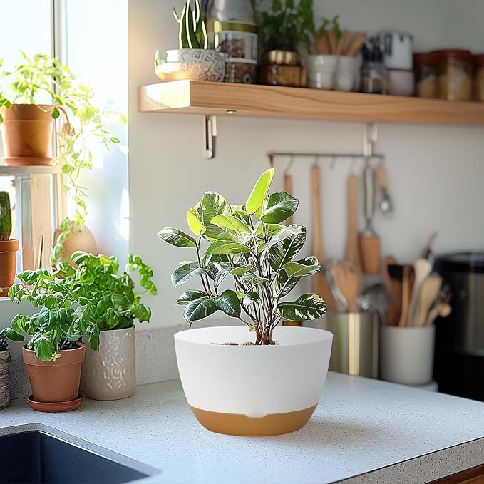 - 【2-in-1 Ventilation, Water Hole Design】There is a hole between the bottom of each flower pot and the tray, which is both a drainage hole and a ventilation hole. It not only controls root ventilation, ensures plant root breathing and promotes plant growth. Excess water beyond what is needed to meet plant growth needs can also be eliminated.