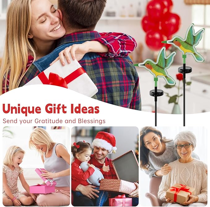 Hummingbird Solar Garden Decor,Hummingbird Outdoor Solar Lights,LED Hummingbirds Light Outside,Solar Garden Lights, Outdoor Decorations for Yard and Patio Pathway Lawn (2 Pack)