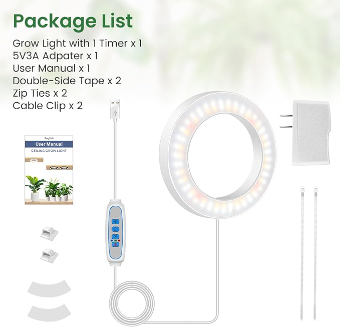- 【Easy Installation and Wire Clips for Tidy Setup】The package included ties, strong double-sided tape, and wire clips for a secure and tidy setup. The power cord is 118 inches long for easy using in window wells, plant shelves, under cabinets and more. Create a thriving indoor garden with this versatile plant lamp