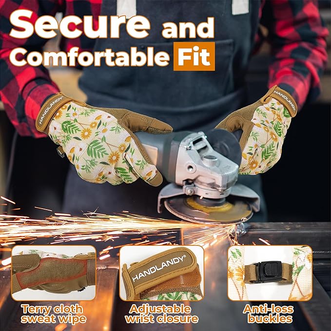 - Durable and Protective Design: Handlandy Work Gloves for Women are crafted with shock-absorbing padding to cushion your hands during heavy lifting or impact work. The reinforce saddle between thumb and index finger enhances the glove's longevity, ensuring they can withstand the rigors of your toughest tasks without damage quickly. These features promise gloves that last while safeguarding your hands from harm