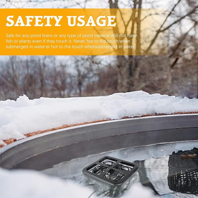 - Effective Pond Heater: This pond heater is designed to prevent outdoor ponds from freezing over during harsh winter conditions.