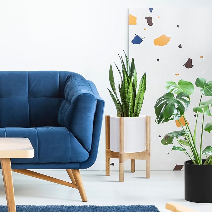 - A Complete Set: Minimalist plastic planter, combined with a sculptural, solid wood stand that match perfectly together and looks great in any home.