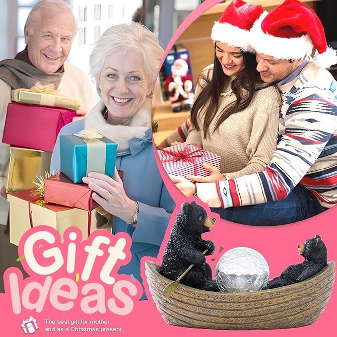 Goodeco Solar Bears Boating Statue - Waterproof Outdoor Bear Decor with Solar Gazing Ball Lights - Great Gift for Bear Lovers and Garden Enthusiasts - Ideal Gifts for Mom & Birthdays