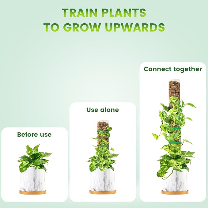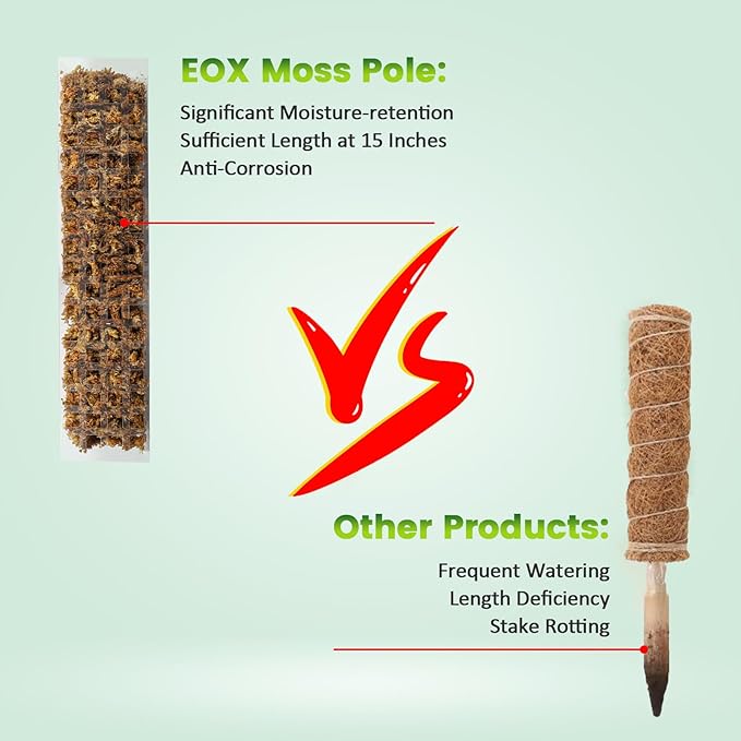 EOX 4 Pcs 15 Inch Plastic Moss Pole for Plants Monstera Set with 150g Sphagnum Moss, Plant Poles for Climbing Plants, Plant Support for Indoor Plants, Garden Ties