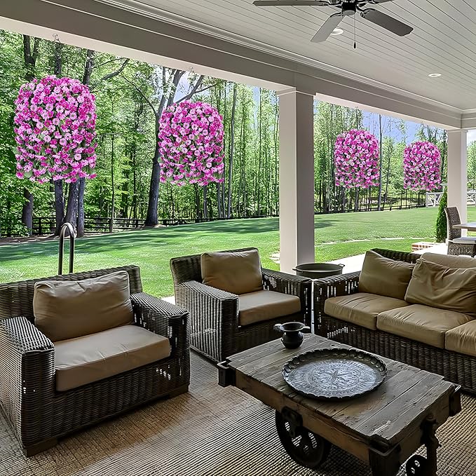 - ARTIFICIAL GREENERY DECORATION: The fake hanging flower in a basket looks real and stylish, making it the perfect hanging basket for your home, patio, balcony, garden, indoor and outdoor. It blooms all year and adds a sense of spring to your home