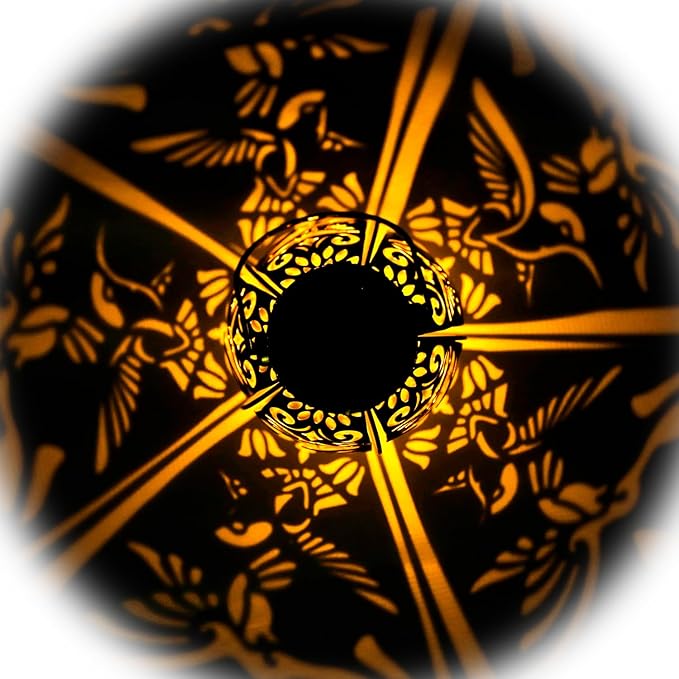 - ✔️【Gorgeous & imaginative Garden Decor】 - Fusion the retro gold, copper of exteriors and irregular pattern inside, at darkness, the solar lantern casting a bright, warm light with hummingbird pattern, which looks like a hummingbird flying symbolizes freedom and eternal.