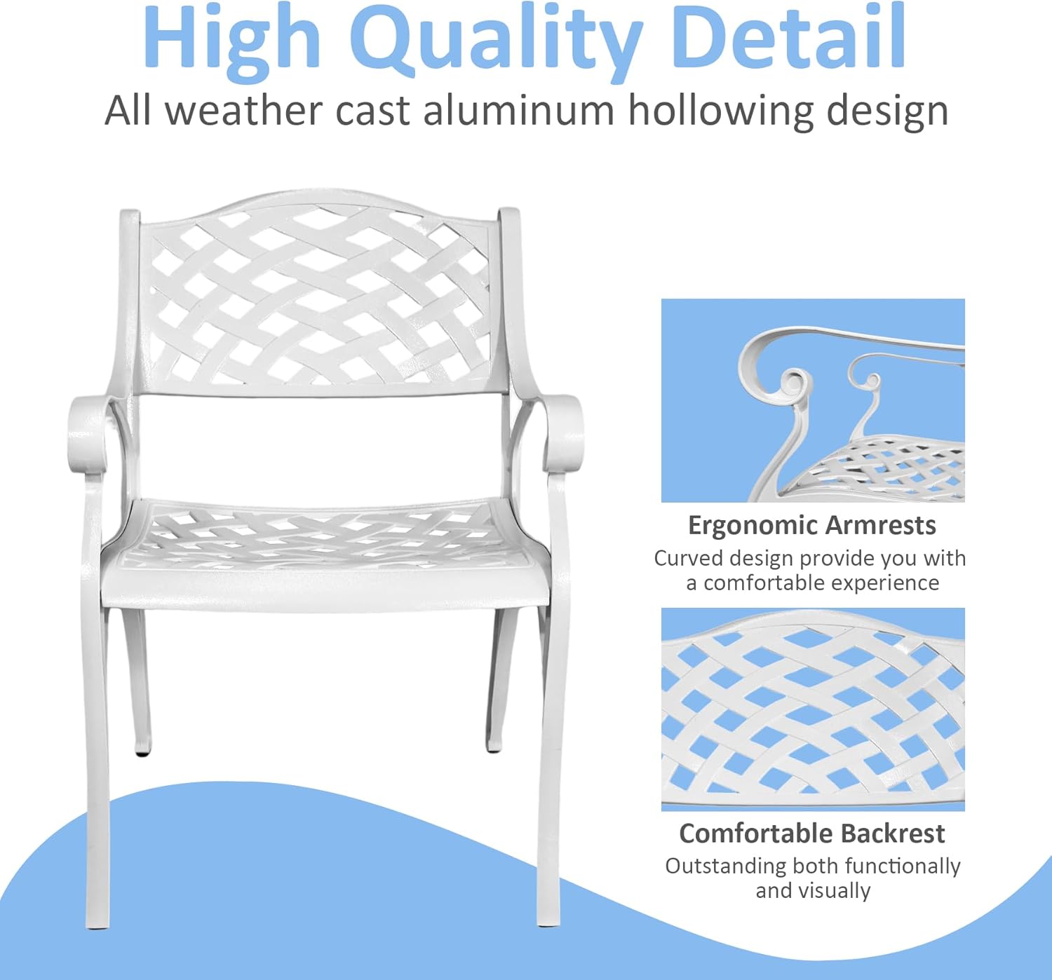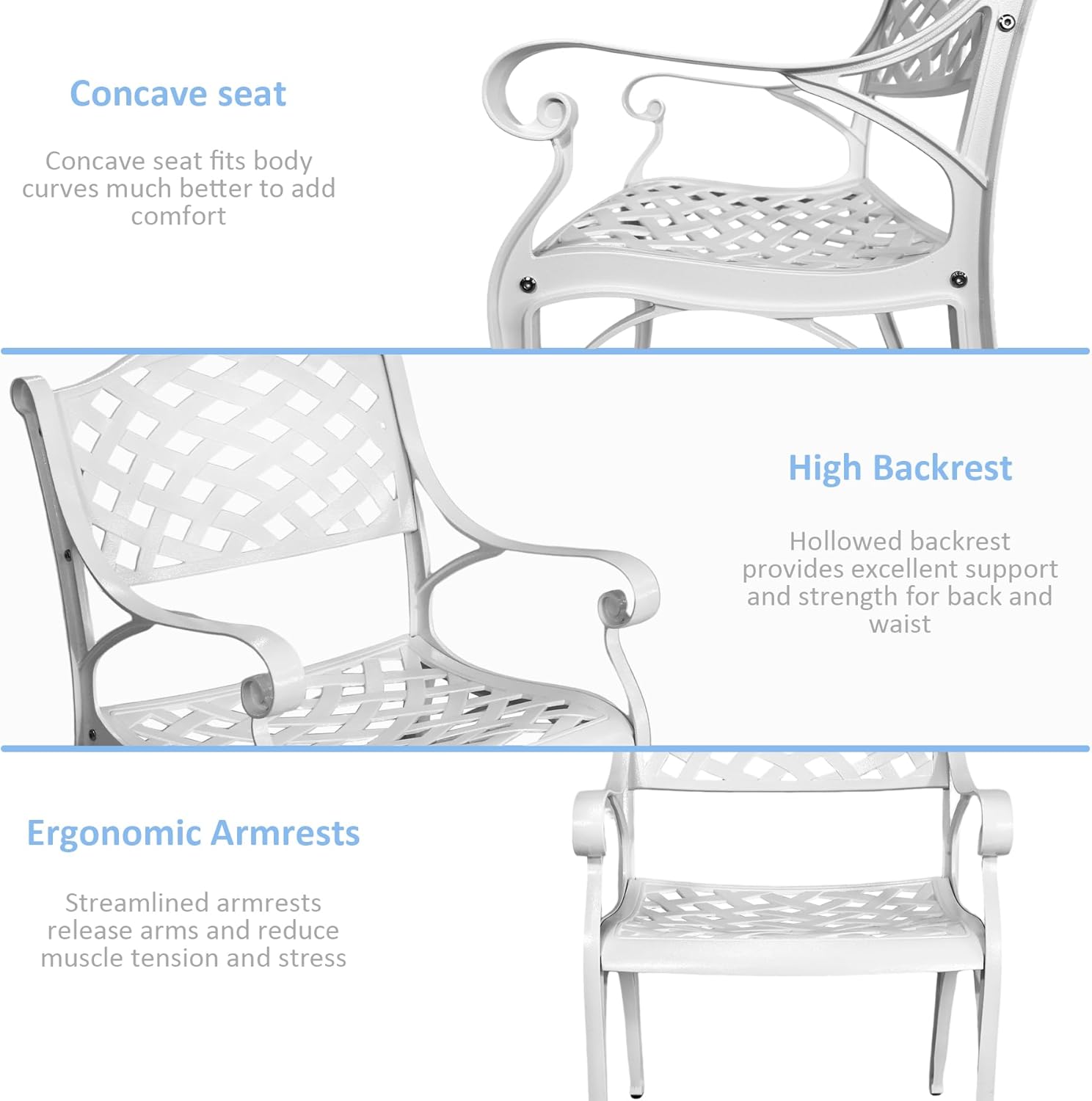 - ALUMINUM FRAME: The frame made of high-quality aluminum with powder coating protects the patio dining set from getting rust from all weather and ensures the outdoor patio dining table durability for years to come.
