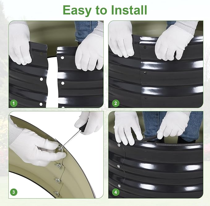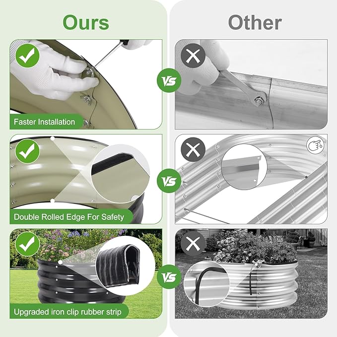 - 【Upgrade Quality & Structure 】The raised garden bed is made of thick galvanized metal with a surface spray coating, which is rust proof and anti-corrosion. Can be used for a long time. The Round design ensures uniform surface force and prevents deformation. More durable than other raised planter box, becoming a good helper for your garden