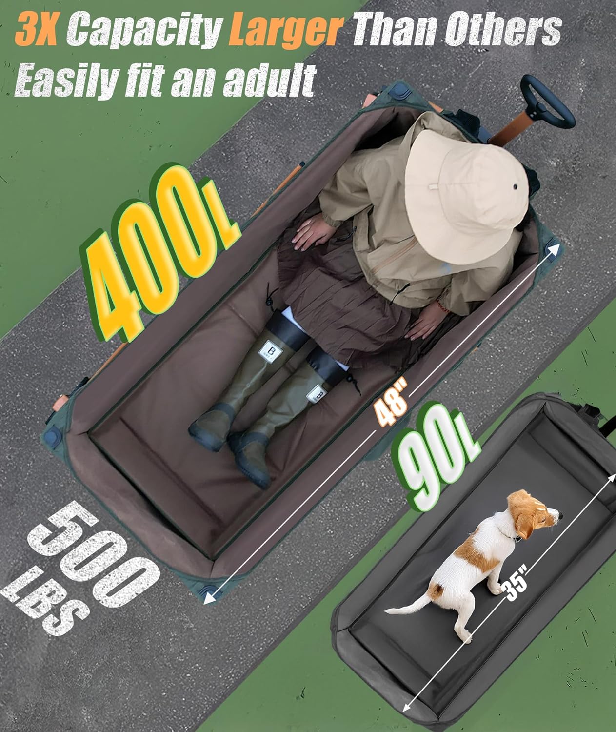 48”L Foldable Wagons Carts Extended, Collapsible Folding Wagon 500lbs Heavy Duty, 320L Large Beach Wagon, Utility Wagon with All Terrain Big Wheels for Sports, Camping, Grocery, Garden, Green