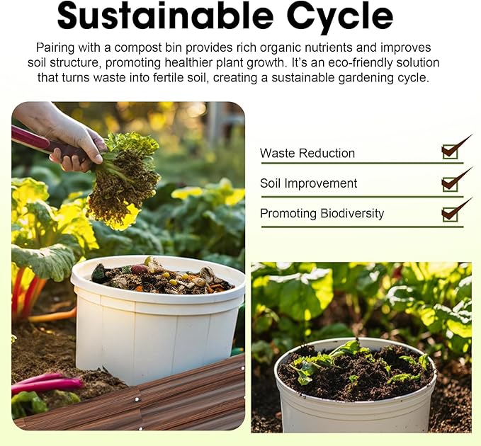 - 【Convenient & Organic】The height of the galvanized raised garden bed greatly reduces the burden of bending over to plant, making it easier for you to perform routine maintenance such as watering, fertilizing and weeding. In addition, our beds can be used with compost bins to effectively utilize kitchen waste and enjoy an organic lifestyle!