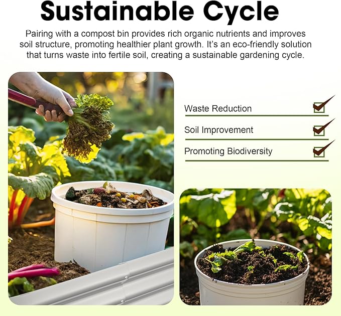 - 【Convenient & Organic】The height of the galvanized raised garden bed greatly reduces the burden of bending over to plant, making it easier for you to perform routine maintenance such as watering, fertilizing and weeding. In addition, our beds can be used with compost bins to effectively utilize kitchen waste and enjoy an organic lifestyle!