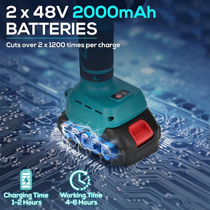 - User-Friendly LCD Display: Monitor your pruning needs easily with the built-in LCD display on the cordless pruning shears. This intuitive screen provides battery life and cutting times, ensuring you have total control over your electric branch scissors during every use