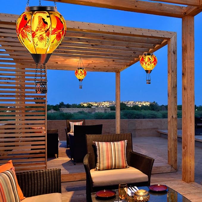 - 【Cardinal Gift】Solar hot air balloon lantern with flame is not only a practical outdoor decor, but also a beautiful gift full of heart. Our cardinal hot air balloon solar lights are perfect for sending your best wishes to your mom, grandmother, family, friends, neighbors. Also great for Mother's Day and Christmas gifts.