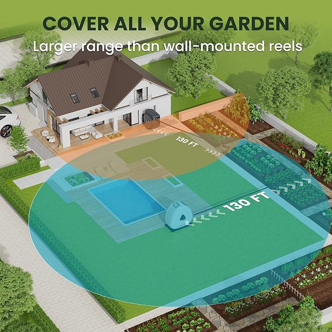 - NO MESS, NO STRESS- Stop wrestling with tangled hoses! This reel auto-retracts with a gentle tug, store the hose neatly, saving time and backyard space. User-friendly details with the hide-in handle and detachable front cover make it enjoyable for all ages.