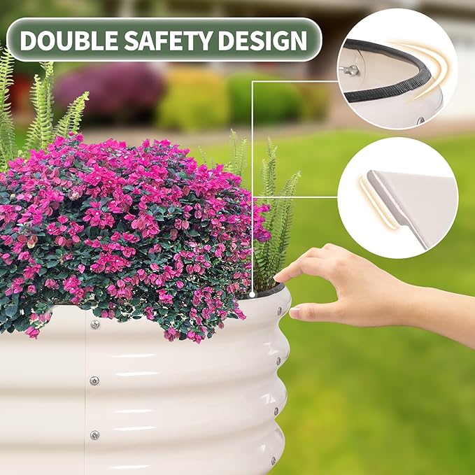- 【High-Quality Materials & Durable】 Made from 0.7mm metal panels with double-layer anti-corrosion, this outdoor raised garden bed features a robust oval-shaped design for added strength and durability. Resistant to rust and corrosion, it provides a long-lasting gardening solution that can be reused for many years, ensuring a sustainable and reliable space for your plants to thrive