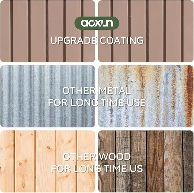Aoxun 6.2x4 FT Shed Outdoor Storage Shed with Lockable Doors & Slooping Roof Metal Garden Tool Shed for Backyard, Patio, Poolside (Brown)