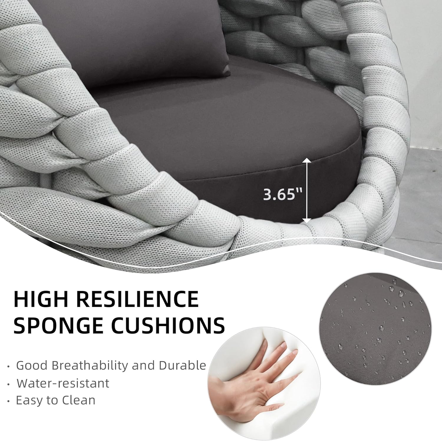 - Stylish & Multi-functional Design: Inspired by bird nests, our outdoor patio furniture set flaunts a modern yet warm look, fitting perfectly in any indoor or outdoor space. Hand-woven with Polyester rope, it exhibits an exquisite craftsmanship. Its versatility allows you to create a cozy corner in your patio, garden, or even living room effortlessly.
