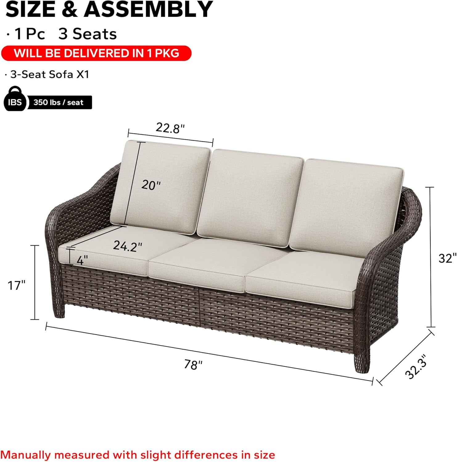 - Packing Included: 1x 3-seat patio wicker sofa. The tools and instructions needed for installation will also be in the box