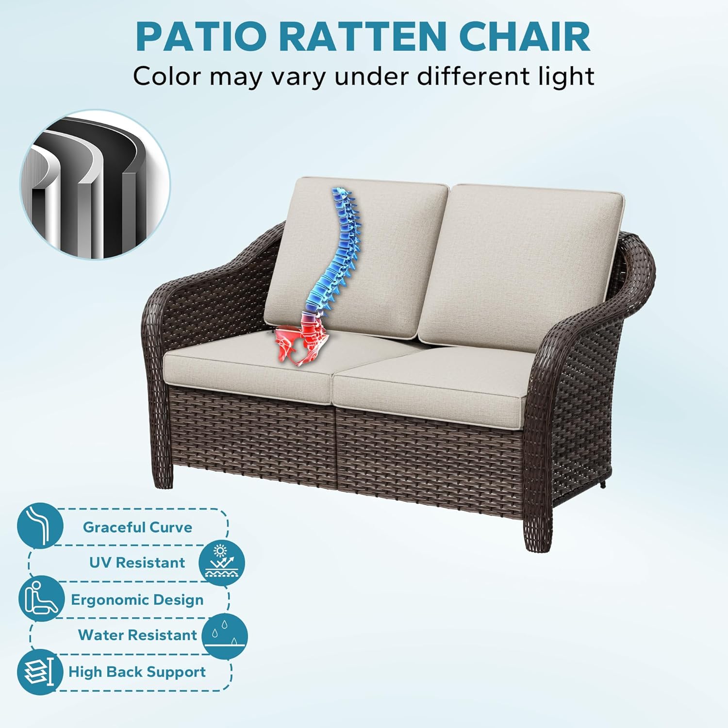 - Packing Included: 1x 2-seat patio wicker sofa. The tools and instructions needed for installation will also be in the box