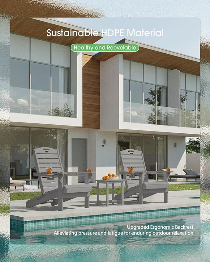 - Weather-Resistant: Made of high-quality HDPE material with wooden texture, SUUNYN sturdy adirondack chair offers excellent weather resistance, resisting fading, splitting, cracking, chipping, peeling, and rotting in harsh conditions. Plus, its easy-to-clean surface and low maintenance