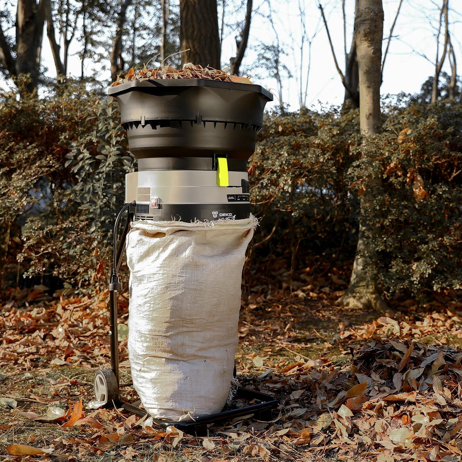 - 【POWERFUL】: Leaf shredder with a 13 amp motor that spins at 8,200 rpm can shred up to 55 gallons of leaves per minute, making your garden work fast and efficient.