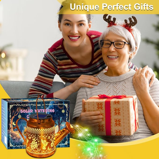 - Nighttime Garden Magic: This solar-powered watering can lantern creates a enchanting ambiance with its warm golden glow. The cascading string lights resemble a stream of sparkling stars, casting mesmerizing patterns on the ground. Perfect for transforming your garden, patio, or yard into a romantic retreat after dark