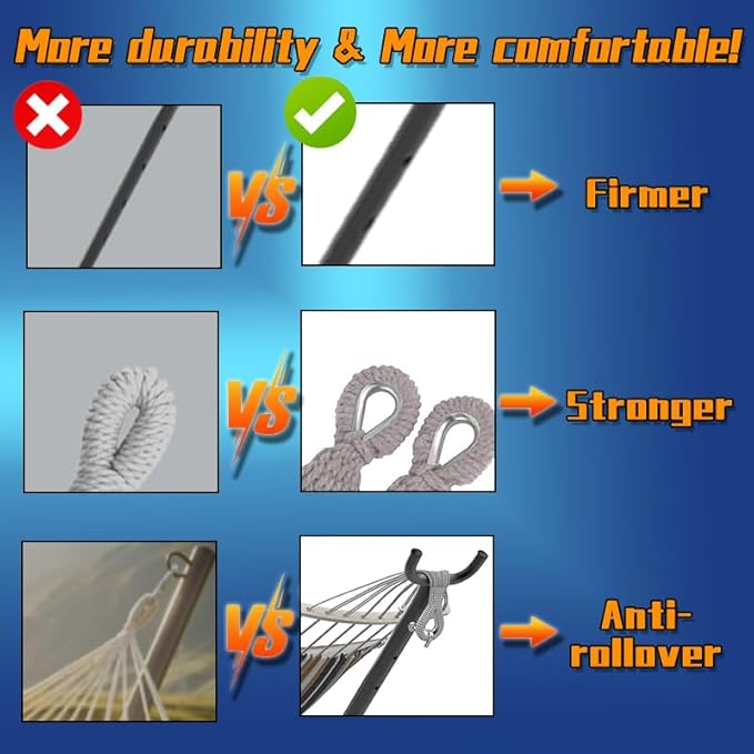 - 【Easy & Stable】 : Thickened steel tube support ensures smooth support of the hammock; three-step assembly method, easy to assemble, so that you can use it more comfortably and peace of mind, faster and more convenient.