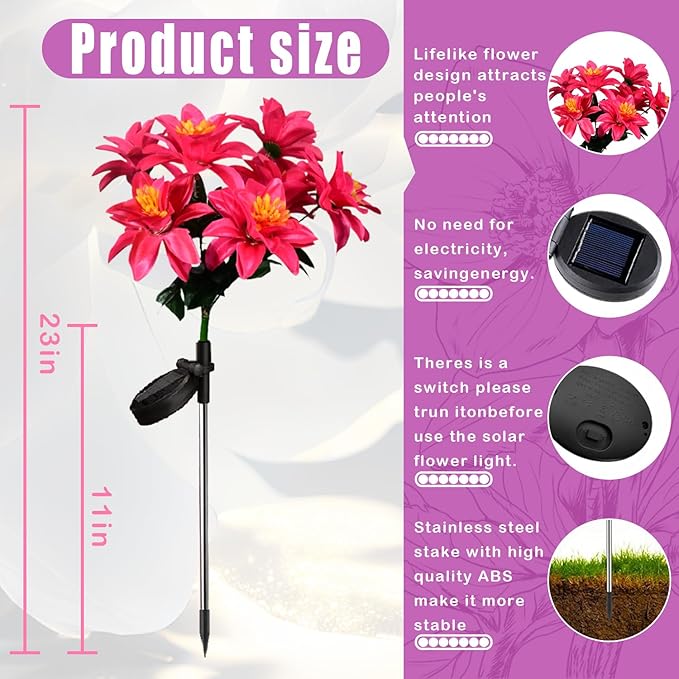 - Bring your garden to life with QINGYA Newest Version Vivid Outdoor Solar Garden Decor Lights! These decorative LED flowers are perfect for adding a touch of color and elegance to any outdoor space. Whether you're entertaining guests, enjoying a quiet evening under the stars, or just relaxing with a good book, these elegance lights provide the perfect ambiance.