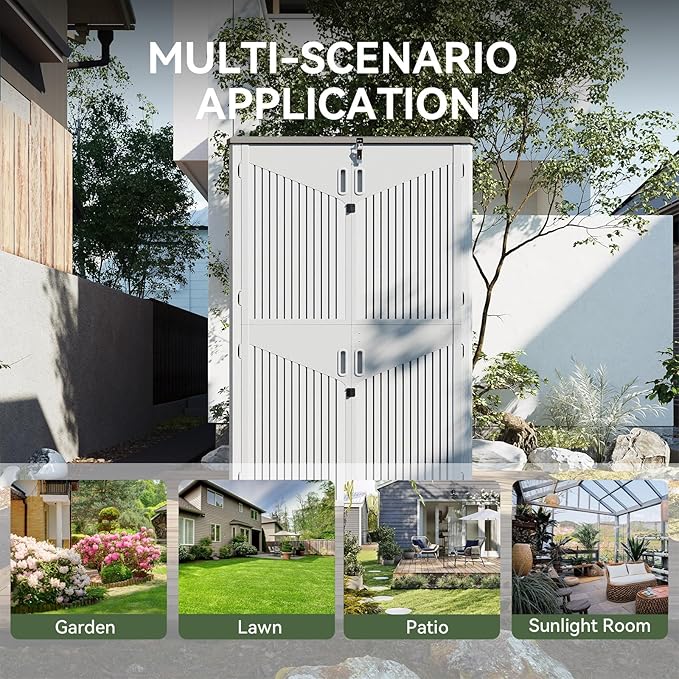 - 【Widened Anti-Toppling Base for Enhanced Stability】Designed with a widened bottom, this storage shed ensures superior stability, even on uneven ground. The top and bottom door suction system prevents accidental opening or closing, guaranteeing safety and durability during frequent use.