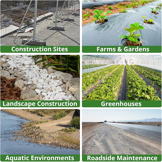 - 【Sustainable & Pollution-Free】We care about the environment, that’s why we designed our reusable landscape fabric. By using our weed barrier fabrics, you can create a greener, more sustainable approach to garden management.