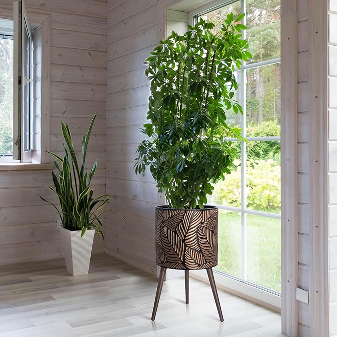 D'vine Dev 16 Inch Planter Pot with Stand, Mid-Century Tall Plant Pot with Legs for Indoor Plants, XX-Large, Bronze/Grey, 88-L-E-6