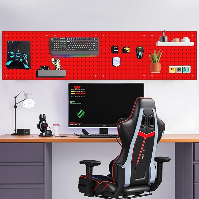 4 Pack Steel Peg Board,Universal 1/8 and 1/4 Pegboard Accessories,Ideal for Garage Tool Storage, Office Organization, Craft Room, Kitchen etc. (Red, 4-12X12)