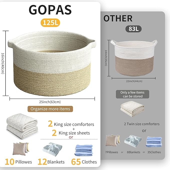 - Extra large Size Multi-Purpose Blankets Basket: 25" x 16", Our Large woven rope basket for storage originally designed as a Blanket storage basket but can be used for more. You can use it as large laundry basket, large storage basket, toy basket for kids, baby toy storage basket bin.Keep in the kids room, family room, or any room in the house that could use extra storage