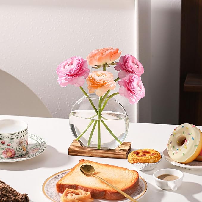- Hydroponic planter with wooden base - This plant propagation holder is equipped with a wooden base, which is finely polished with rounded edges and no burrs, not only provides stable support for the vase but also adds a natural and rustic charm. But please notice that don’t fill this hydroponic planter up with water, and you can always add some rocks inside to keep this plant propagation holder in place, reducing the risk of the vase tipping over.
