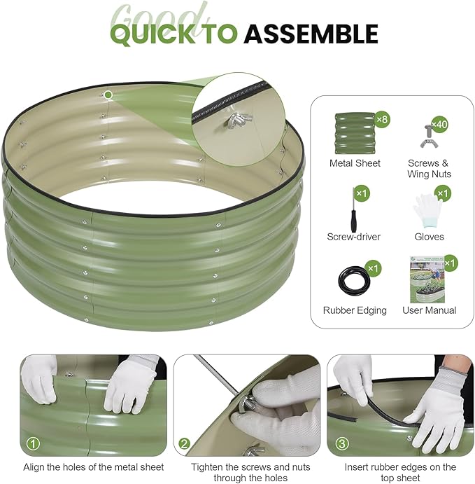 - 【Widely Used】 The outdoor raised planting beds measure 3ft (L) x 3ft (W) x 1.3ft (H), provide ample growing space for vegetables, flowers, fruits and other plants. The round design looks elegant and complement any outdoor setting - perfect for patios, courtyards, or lawns.