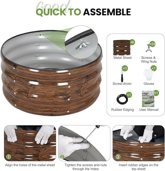 - 【Easy & Quick Assembly】The garden raised bed comes with user-friendly tools and clear instructions. Its simple structure design, with wing nuts allows for quick, tool-free assembly, more efficient than using regular nuts. (Warm Reminder: Remove the protective film before installation)