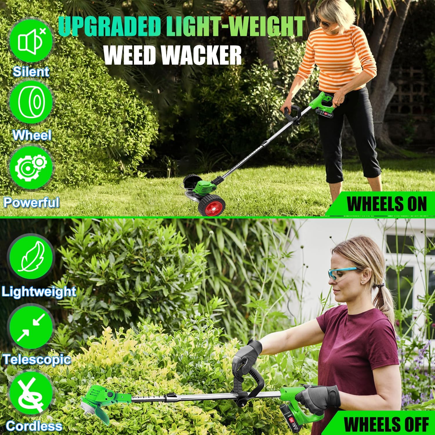 - 【MULTI-FUNCTION GRASS TRIMMER】2025 New grass trimmer/ lawn edger/ small mower/ brush cutter cordless weed wacker with 850W high-power motor, the speed can reach 20,000RPM, the battery operated weed wacker is an efficient and reliable helper to keep the lawn, driveway and flower bed clean, and can trim dense grass for your lawn or garden. You can enjoy patio mowing time!