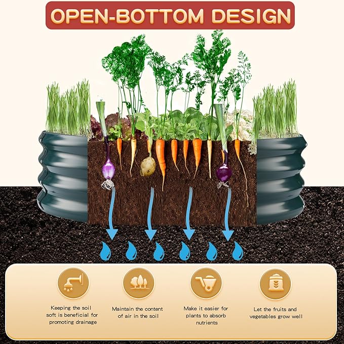 - 【OPEN BOTTOM】: This painted raised garden beds have open bottom design,which promotes healthy drainage and allows for deeper root growth, ensuring your plants thrive.