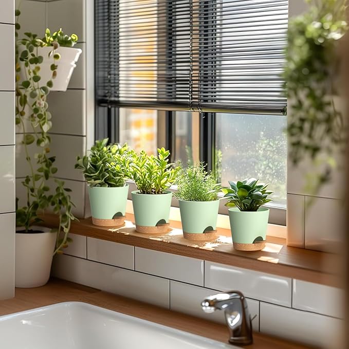 - 【Self-Watering Design】These 4 inch self watering pots for indoor plants are designed with a wick rope that draws water from the reservoir at the bottom. The set of 6 plastic self watering planter provides an optimal air circulation system for plant roots