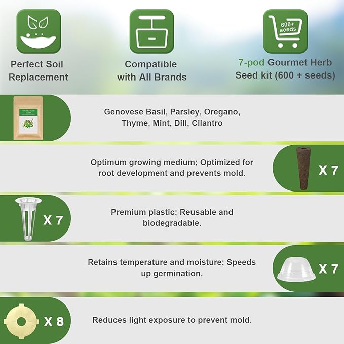 - Universal Compatibility - Our seed pod kits are perfectly compatible with AeroGarden, iDoo, Ahopegarden, MUFGA, and most other hydroponics growing systems. You can easily incorporate our kits into your existing setup or start fresh with confidence. Integrate convenience and reliability with economic viability.