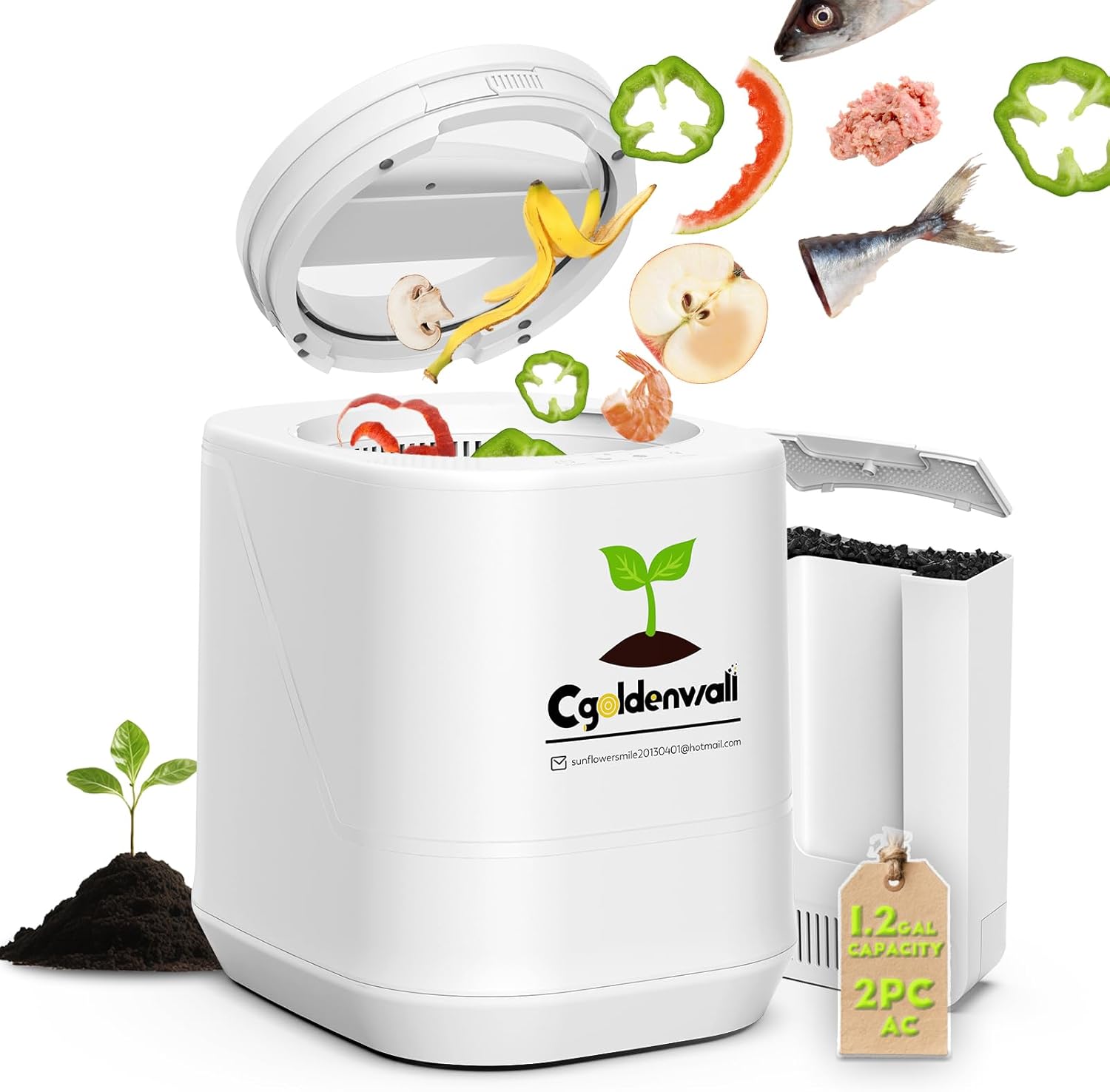 - 1.2GAL Large Capacity: The compost bin for kitchen has a 1.2GAL max capacity, which is sufficient for a family's daily food waste disposal. Same prices, obtain bigger Food Cycler, bigger capacity, better experience.