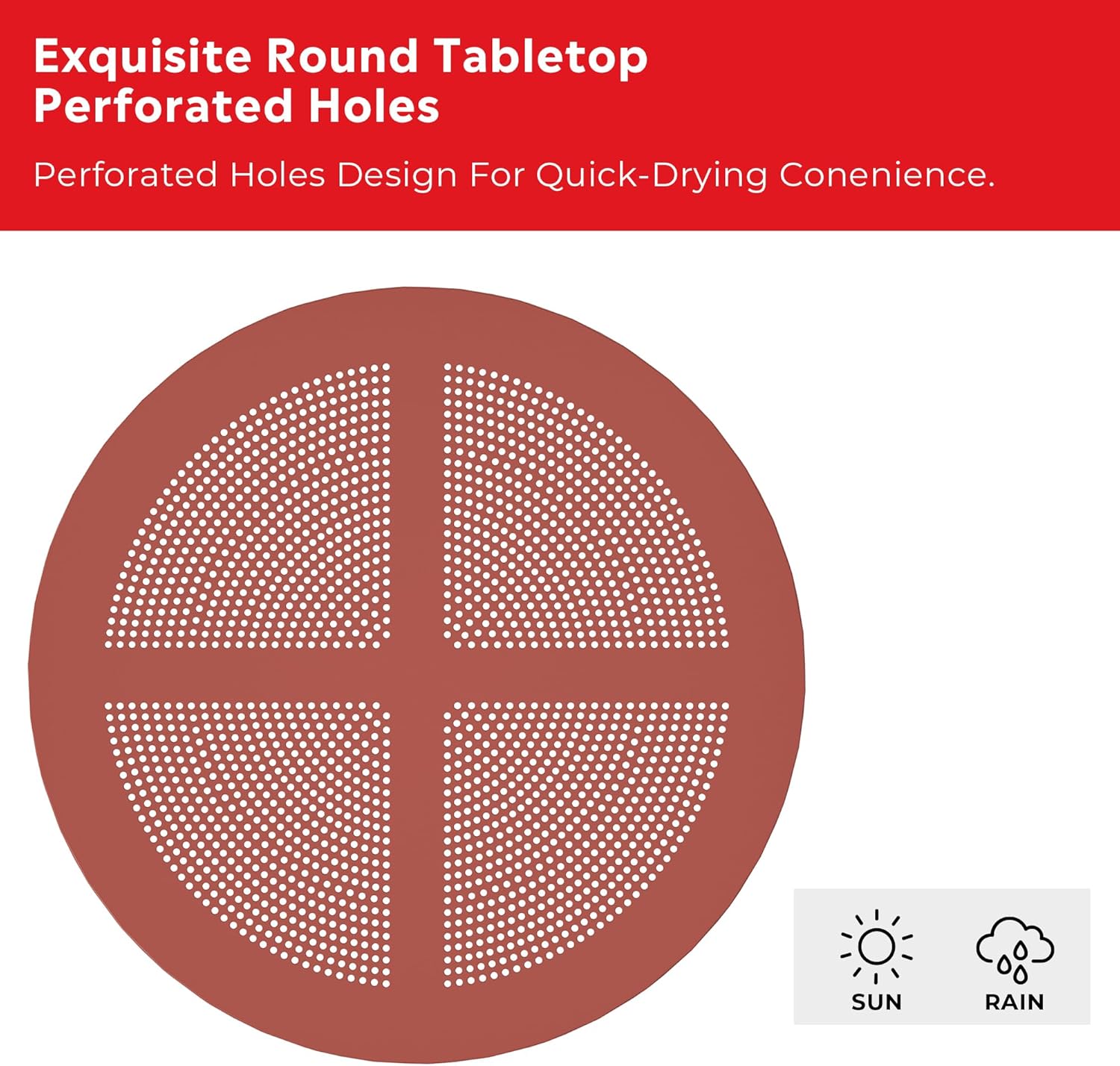 4 Person Dining Table Set, HDPE Patio Round Dining Table and Stackable Chair, Kitchen & Dining Room Sets All Weather for Backyard Porch Poolside, Red