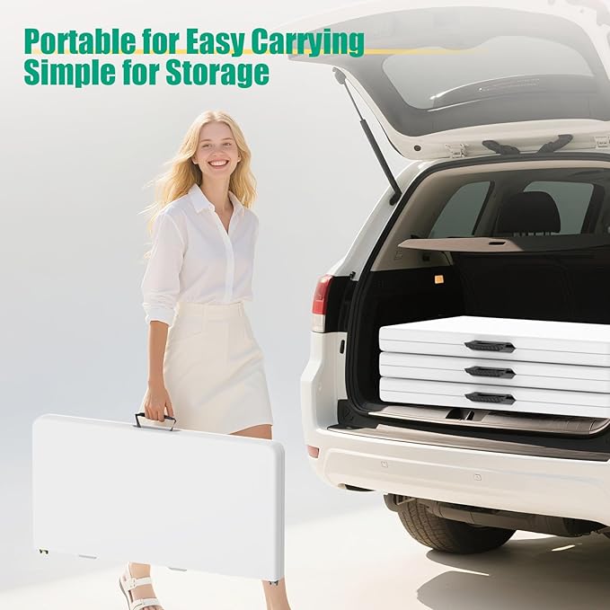 - Portable & Convenient: With a compact, foldable design, this plastic folding table comes with handles can be easily transported and stored, making it an ideal choice for on-the-go use and storage