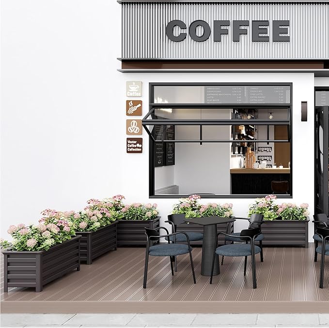 - Sleek Black Modern Design: Featuring a sleek matte black finish and clean-lined rectangular design, this planter complements contemporary and minimalist décor, adding visual interest and sophistication; its understated elegance integrates seamlessly with outdoor furniture and accessories, elevating your landscaping with a timeless modern aesthetic.