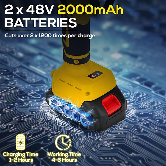 - User-Friendly LCD Display: Monitor your pruning needs easily with the built-in LCD display on the cordless pruning shears. This intuitive screen provides battery life and cutting times, ensuring you have total control over your electric branch scissors during every use