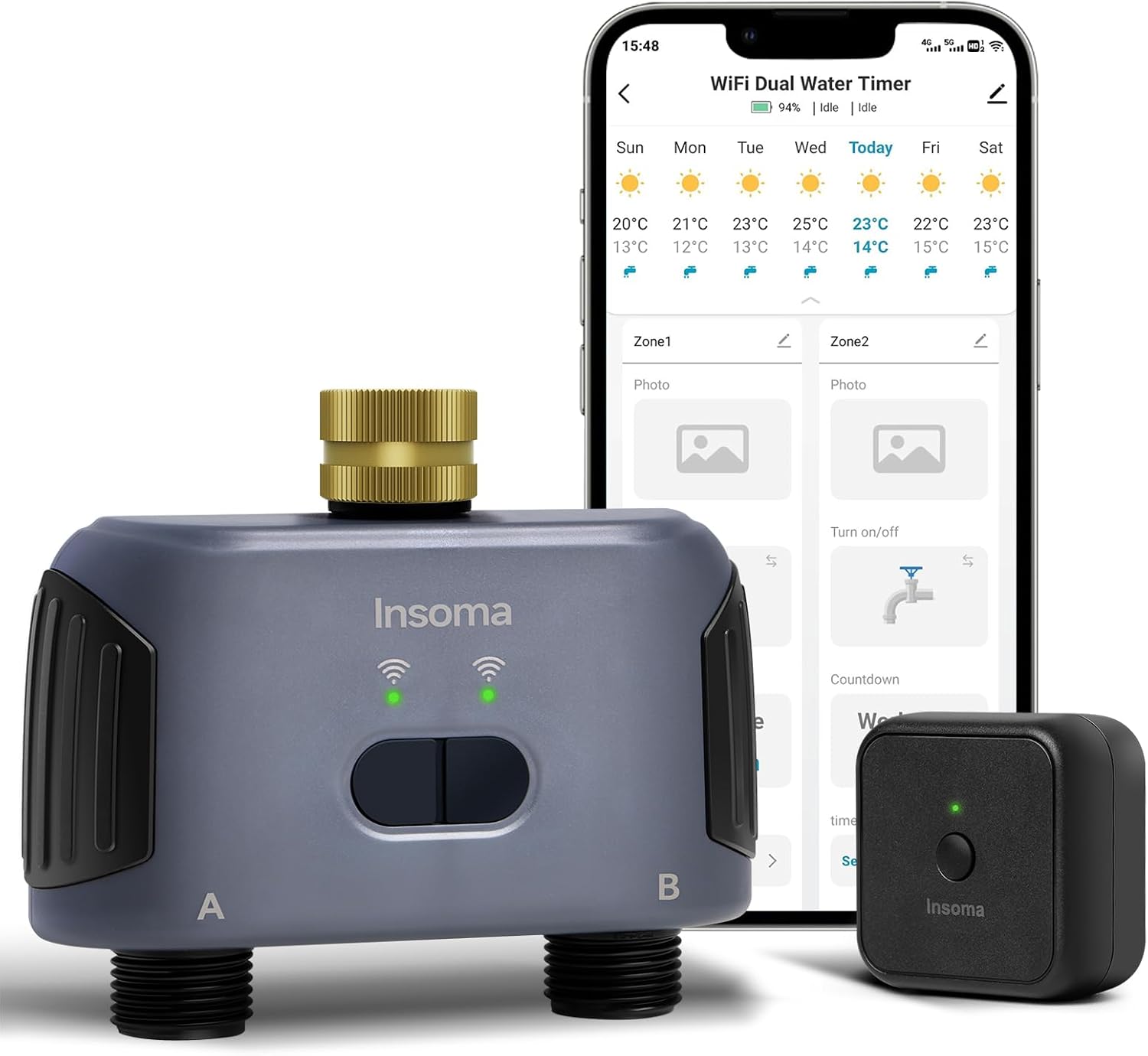 2 Zones WiFi Water Timer Brass Inlet, Sprinkler Timer for Garden Hose, APP Remote Control WiFi Hose Timers with Gateway, Voice Control with Alexa, Rain Delay and Manual Mode for Yard Lawn Watering