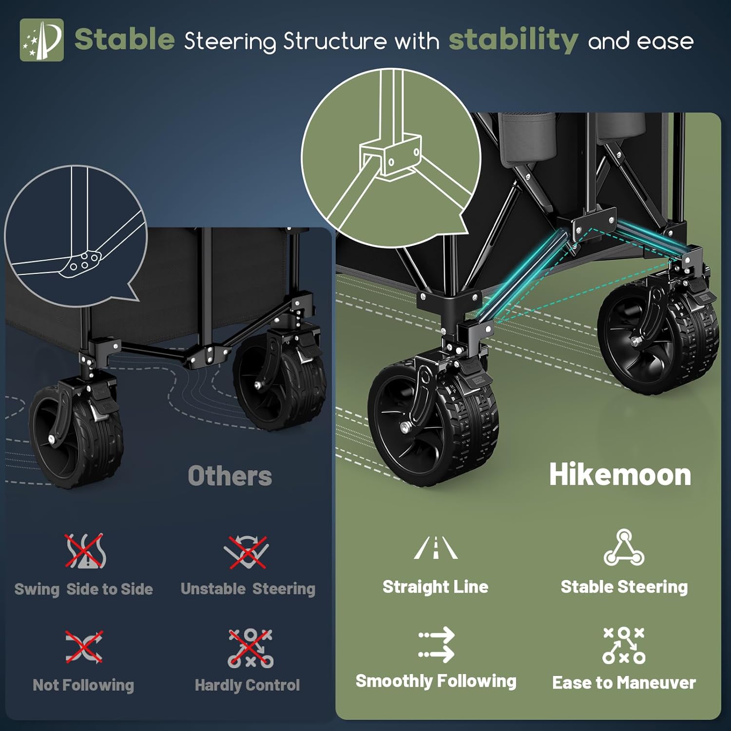 - 【𝟐𝟒-𝐇𝐨𝐮𝐫 𝐑𝐞𝐬𝐩𝐨𝐧𝐬𝐞 & 𝟏𝟐-𝐌𝐨𝐧𝐭𝐡 𝐖𝐚𝐫𝐫𝐚𝐧𝐭𝐲】: Hikemoon foldable wagons come with a 𝟏-𝐲𝐞𝐚𝐫 𝐰𝐚𝐫𝐫𝐚𝐧𝐭𝐲. Please don't hesitate to 𝐜𝐨𝐧𝐭𝐚𝐜𝐭 𝐮𝐬 if you have any questions about the collapsible utility wagon. We’ll respond within 𝟐𝟒 𝐡𝐨𝐮𝐫𝐬.