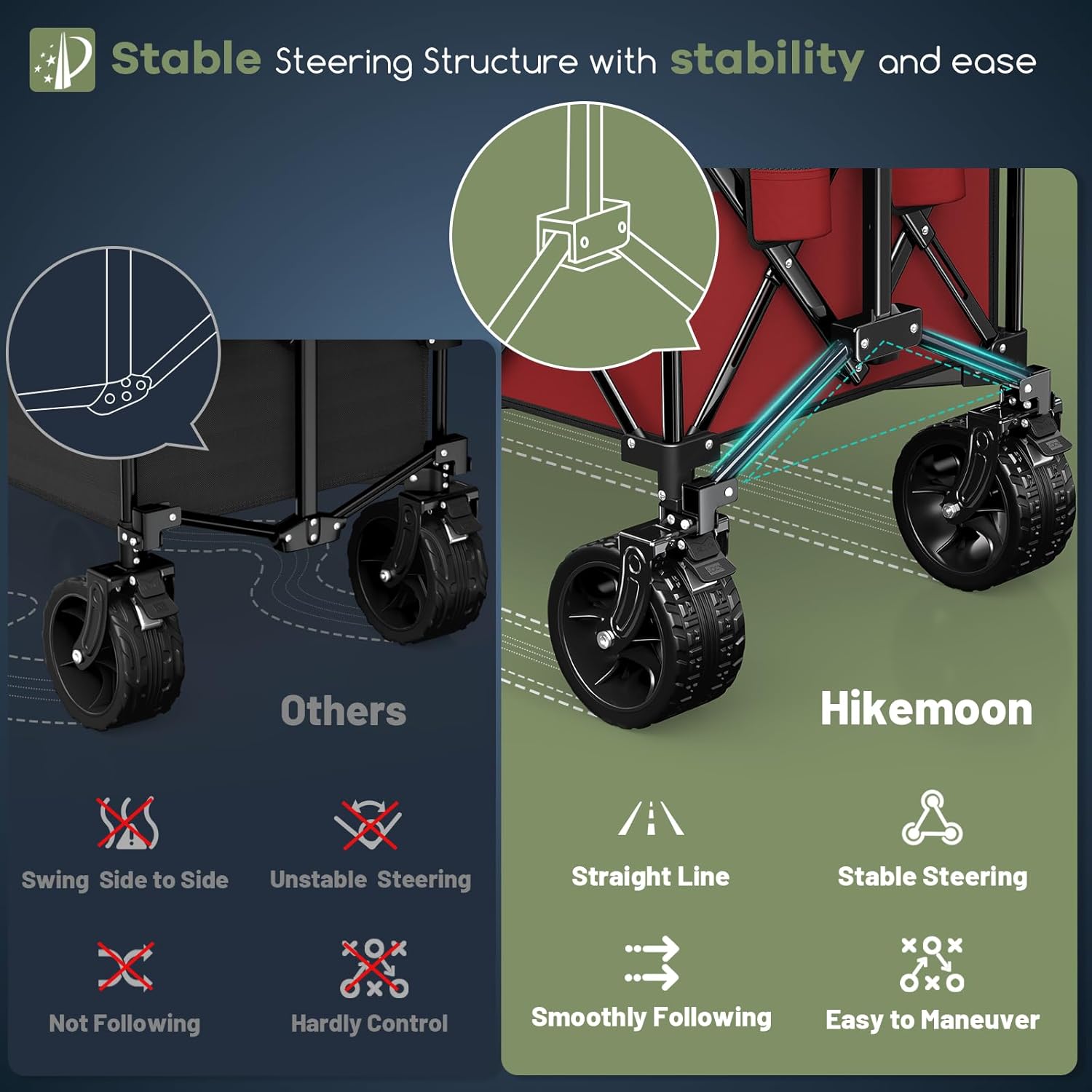 - 【𝟐𝟒-𝐇𝐨𝐮𝐫 𝐑𝐞𝐬𝐩𝐨𝐧𝐬𝐞 & 𝟏𝟐-𝐌𝐨𝐧𝐭𝐡 𝐖𝐚𝐫𝐫𝐚𝐧𝐭𝐲】: Hikemoon foldable wagons come with a 𝟏-𝐲𝐞𝐚𝐫 𝐰𝐚𝐫𝐫𝐚𝐧𝐭𝐲. Please don't hesitate to 𝐜𝐨𝐧𝐭𝐚𝐜𝐭 𝐮𝐬 if you have any questions about the collapsible utility wagon. We’ll respond within 𝟐𝟒 𝐡𝐨𝐮𝐫𝐬.