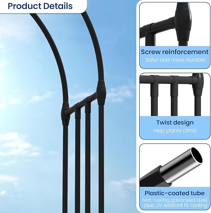 - Sturdy and Durable: Crafted from galvanized steel pipe coated with plastic, this garden pergola is built to last. The heat-resistant steel ensures it remains cool even in high temperatures, providing stable and reliable support for your climbing plants year after year.